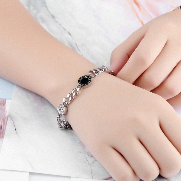 Dámsky oceľový náramok - Love je vyrobený z chirurgickej ocele, ktorá si udržiava svoj lesk, nečerná a je antialergická. Náramok je v dizajne 3 polguličiek, ktoré majú gravírovaný nápis "Love". Dve polguličky sú ozadené čírym kryštálom tretia polgulička má čierne vnútro. Náramok je vhodný aj na každodenné nosenie.