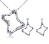 Súprava so vsadenými fialovými Swarovski kryštálmi pozostáva z retiazky, prívesku a náušníc. Retiazka má zapínanie na karabínku a náušnice na puzetu. Set je vyrobený zo špeciálneho zlatníckeho kovu 18Kgp.